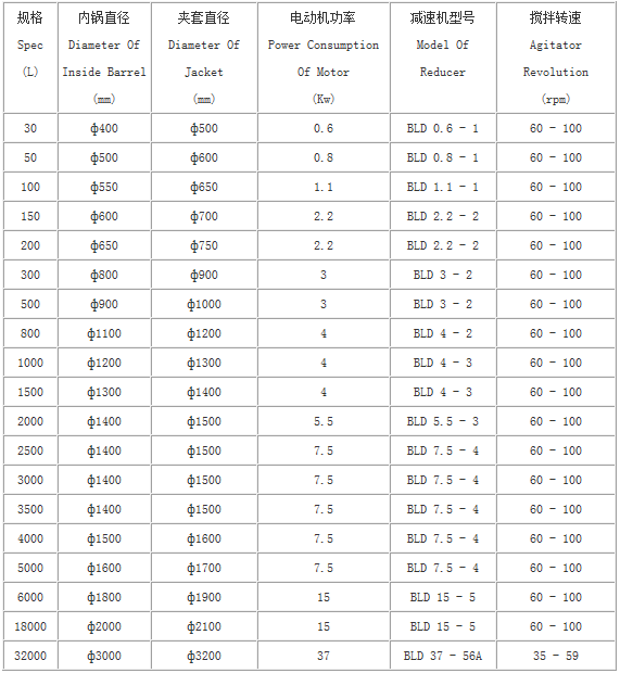 由于用戶因生產工藝、操作條件不盡相同,夾套加熱型式分為電熱棒加熱、蒸汽加熱、導熱油循環加熱,軸封裝置分為填料密封和機械密封,攪拌型式有錨式、漿式、渦輪式、推進式或框式。開孔數量、規格或其它要求可根據用戶要求設計、制作。